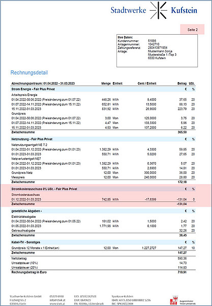 Informieren Sie sich auf der ausführlichen Rechnungserklärung der Stadtwerke Kufstein über alle Punkte Ihrer Rechnung im Detail!