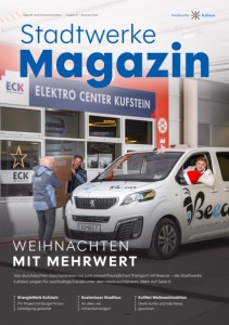 4 7.500 m² Gewerbefläche in Kufsteiner Top-Lage Die Stadtwerke Kufstein bieten eine attraktive Pachtmöglichkeit. 5 Herzlich willkommen im Team Die Stadtwerke Kufstein freuen sich über neue Mitarbeiter*innen. 6 Weihnachten mit Mehrwert Von durchdachten Geschenkideen bis zum umweltfreundlichen Transport mit Beecar. 8 Nikolausbesuch, Sammelstellen-Tipps & Christbaumentsorgung Das Wichtigste zur Abfallwirtschaft in Kufstein im Überblick. 10 Ein Arbeitsleben in luftiger Höhe Michael Kronthaler verabschiedet sich in den wohlverdienten Ruhestand. 12 Starke Netze für eine starke Stadt Umfangreiche Arbeiten im vergangenen Jahr sichern Strom, Wasser und Wärme für die Zukunft. Inhalt Stadtwerke Aktuell Abfallwirtschaft ECK Elektroinstallation Fernwärme 14 Saisonende am Kaiserlift Kufstein Der Sessellift verabschiedet sich in die Winterpause. Kaiserlift Kufstein 16 Weihnachtsaktion mit Mehrwert Mit einem Tarifupgrade drei Monate gratis surfen und tolle Preise gewinnen. KufNet – Fernsehen, Internet, Telefon 17 Kostenloser Stadtbus im Advent Auch heuer fahren die Kufsteiner Stadtbusse an allen vier Adventsamstagen kostenlos. Stadtbus 18 Lehrberufe hautnah erleben Zahlreiche Jugendliche und Eltern besuchten den Tag der Lehre in der Lehrlingsakademie, um sich über die acht möglichen Lehrberufe zu informieren. 20 Neues aus der Lehrlingsakademie Acht neue Lehrlinge starteten ihre Ausbildung, gleichzeitig konnten neun Lehrlinge ihre Ausbildung erfolgreich abschließen. Lehrlingsakademie